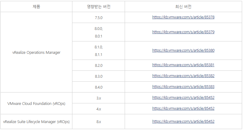 □ 영향받는 제품 및 해결 버전 ![]() ※ 최신 버전 링크 사이트에 명시되어 있는 ‘Reference’ 내용을 참고하여 패치 적용