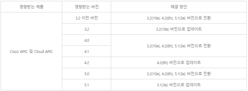 □ 영향받는 제품 및 해결 방안 ![]() ※ 참고 사이트에 명시되어 있는 ‘Fixed Software’ 내용을 참고하여 패치 적용