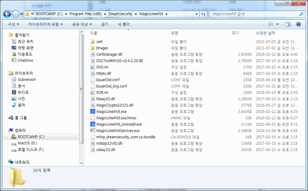 - 프로그램 삭제 방법 (택 1) (1) [시작] - [시스템] - [제어판] - [프로그램 및 기능] - MagicLineNX 선택 - [제거] 클릭 (2) [내 컴퓨터] - [로컬 디스크(C:\)] - [Program Files(x86)] - [DreamSecurity] - [MagicLin4NX] 경로로 이동 – MagicLine4NX_Uninstall.exe 프로그램 실행 □ 기타 문의사항 o 드림시큐리티 : 02) 2233-5533(510) o 한국인터넷진흥원 인터넷침해대응센터: 국번없이 118 □ 작성 : 침해사고분석단 취약점분석팀 |
