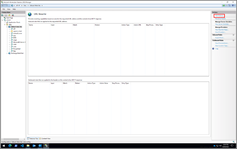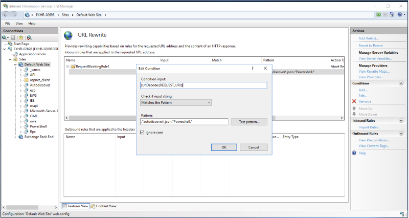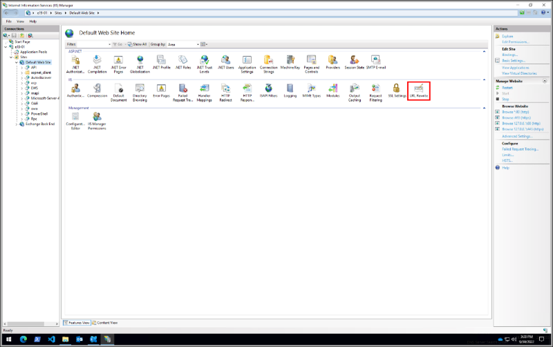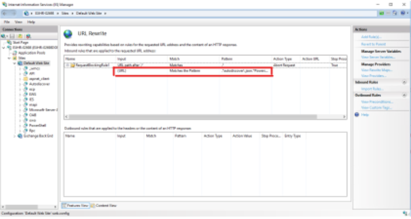 1. IIS Manager -> Default Web Site -> Autodiscover -> URL