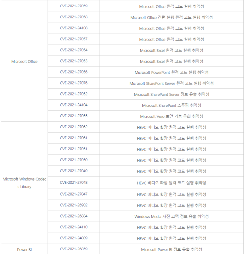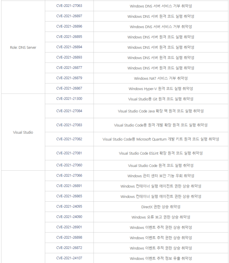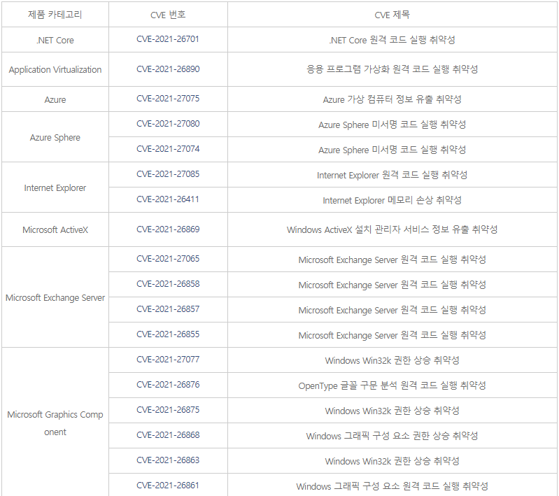 [참고 사이트] [1] (한글) https://portal.msrc.microsoft.com/ko-kr/security-guidance [2] (영문) https://portal.msrc.microsoft.com/en-us/security-guidance [3] https://msrc.microsoft.com/update-guide/releaseNote/2021-Mar