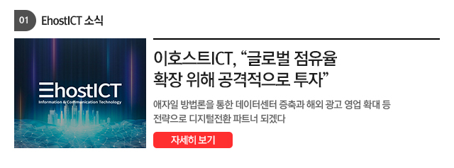 | 다음글 | 이호스트ICT "IDC 글로벌 점유율 확장 위해 공격적으로 투자" |