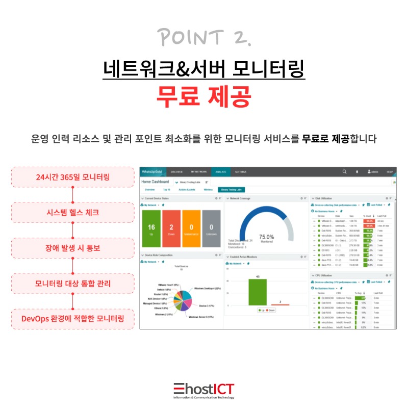 4차 산업 시대, 데이터 고도화가 필요한데 전산실 투자는 부담스럽다면?⠀ Tier3 규모&국제 표준 인증을 받은 데이터센터에 코로케이션 입주하세요 ⠀ ■ 보안이 강화된 최첨단 시설 ■ 회선 이중화로 회선 장애 시 유연한 대처 가능 ■ 이중 냉각 설비&화재 대비 시설 OK ■ 전문 엔지니어의 1:1 전담 관리 ⠀ 이호스트ICT에서는 네트워크&서버 모니터링을 "무료 제공" 해드립니다. ⠀ ㈜이호스트아이씨티 www.ehostidc.co.kr 1566-8757 |