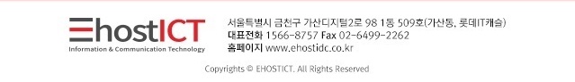 본 웹사이트와 (주)이호스트아이씨티가 관리하는 제반사이트에 관련하여, 사이트내에 게시된 이메일 주소가 전자우편 수집 프로그램이나 그밖의 기술적 장치를 이용하여 무단으로 수집되는 것을 거부하며, 이를 위반시 정보통신망법에 의해 형사처벌됨을 유념하시기 바랍니다.