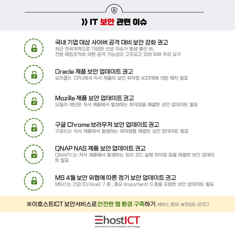 ㈜이호스트아이씨티는 백신 프로그램 및 악성코드 방어 소프트웨어을 이용하여 컴퓨터 바이러스에 의한 피해를 방지하고 있으며, 해당 소프트웨어는 매일 주기적으로 업데이트하고 있습니다.