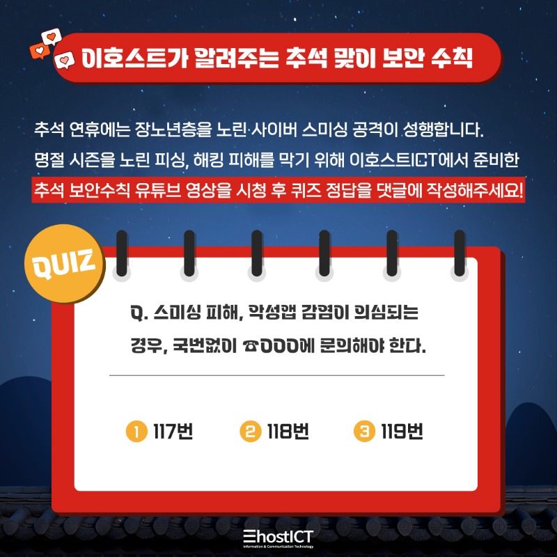 | [EVENT] 이호스트ICT가 알려주는 명절 보안 수칙! | |