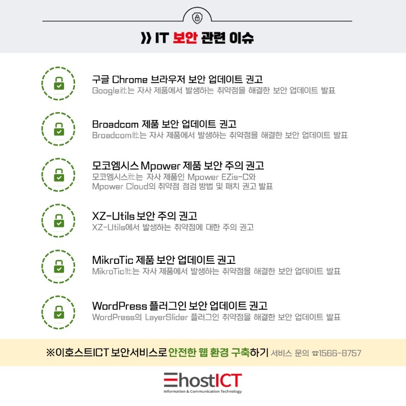 ㈜이호스트아이씨티는 백신 프로그램 및 악성코드 방어 소프트웨어을 이용하여 컴퓨터 바이러스에 의한 피해를 방지하고 있으며, 해당 소프트웨어는 매일 주기적으로 업데이트하고 있습니다.