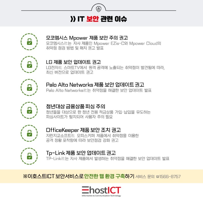 | 다음글 | [이호스트ICT소식] 이호스트ICT, 제로트러스트 기반 안티랜섬웨어 솔루션 선보인다 |