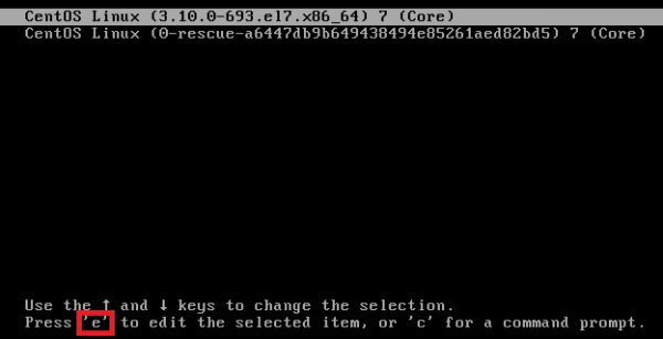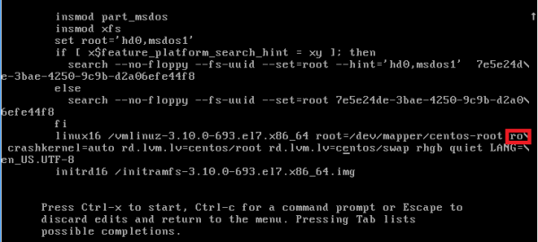 2. 커널 선택 화면에서 e 입력 ![]() 3. linux16 라인의 ro 찾기 ![]()