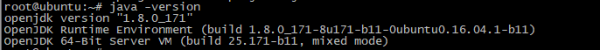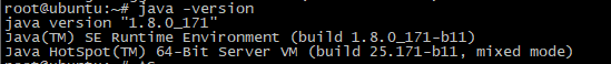 e. java 버전 확인 root@ubuntu:~# java -versionjava version "1.8.0_171" java(TM) SE Runtime Environment (build 1.8.0_171-b11)java HotSpot(TM) 64-Bit Server VM (build 25.171-b11, mixed mode) ![]()