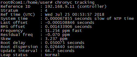 ![]() client : root@com1:/home/user# chronyc tracking ![]()