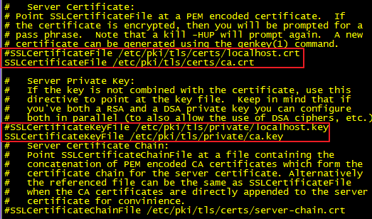 6. SSL conf파일 수정 [root@localhost ~]# vi /etc/httpd/conf.d/ssl.conf ![]()