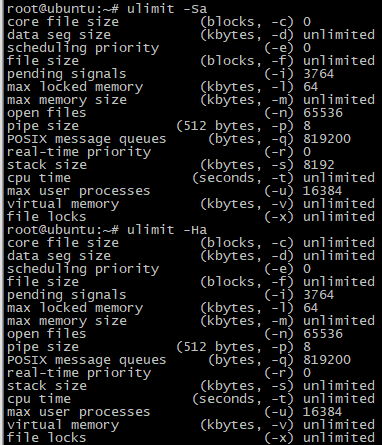 6. /etc/security/limits.conf 설정 - soft limit 와 hard limit 의 두가지 설정 a. soft limit 확인 방법 # ulimit -a # ulimit -Sa b. hard limit 확인 방법 # ulimit -Ha