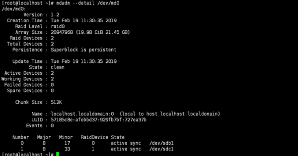 2. Raid 생성 -레이드 구성 확인 : mdadm –detail [Raid 장치명] ![]() 3. 파일 시스템 생성 및 마운트