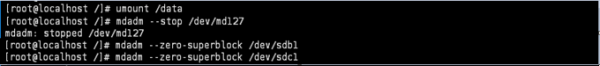 4. Raid 삭제 - 마운트 해제 후 레이드 장치 중지 및 구성 삭제 - mdadm --stop [Raid 장치명]//raid 장치 중지 - mdadm --zero-superblock [dev/sdX]// ![]() |