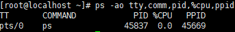 ps –a : 다른 사용자의 프로세스 상태 표시 ps –e : 모든 프로세스 목록 확인 ps –o field : ‘field’ 부분에 지정된 형식에 따라 정보 표시 ex) ps –ao tty,comm,pid,%cpu,ppid