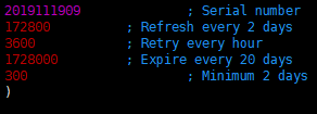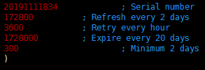 ![]() systemctl status named 로 bind 프로세스 상태 확인 시 out of range 에러 확인. zone 파일 시리얼 넘버 10자리 초과 시 위와 같이 out of range 에러 출력 되며 수정 내용 적용되지 않는 이슈입니다. 해결방법은 문제되는 zone파일 시리얼넘버를 10자리 이하로 수정해주시면 됩니다. ![]()