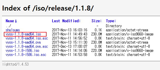 1) 설치파일 다운로드(ISO) Download link: http://vyos.uv.es/iso/release/1.1.8/