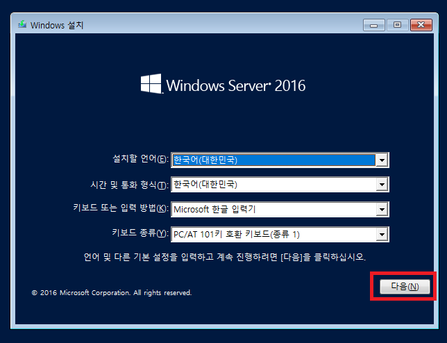 설치 iso로 부팅 후 다음 클릭