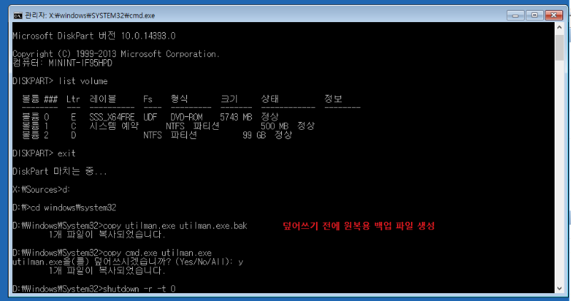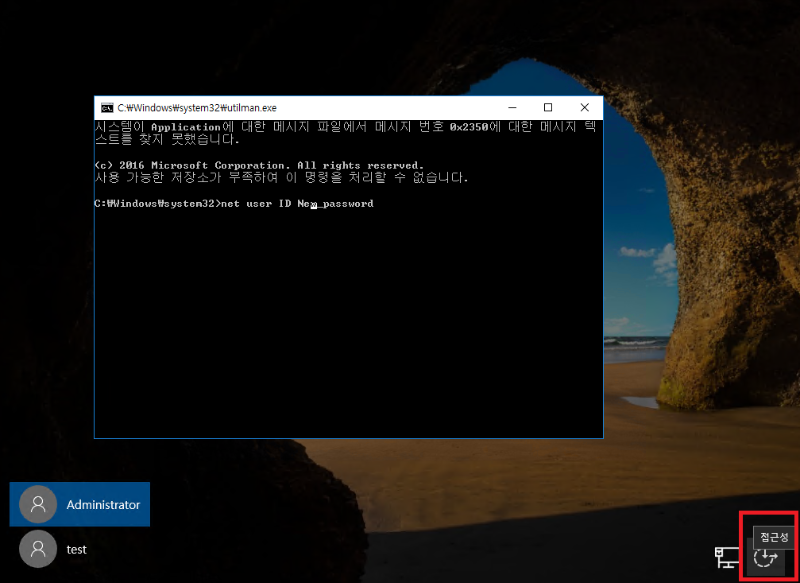 utilman.exe 파일 변경이 안 통할 때)