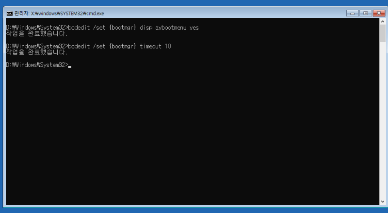 >bcdedit /set {bootmgr}