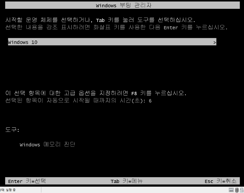 해당 화면에서 F8입력