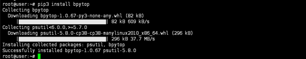 root@Ehost-test:~# apt install python3 – pip root@Ehost-test:~# python3 --version 3) bpytop 설치 ![]() root@Ehost-test:~# pip3 install bpytop 4) bpytop 실행 ![]() root@Ehost-test:~# bpytop |