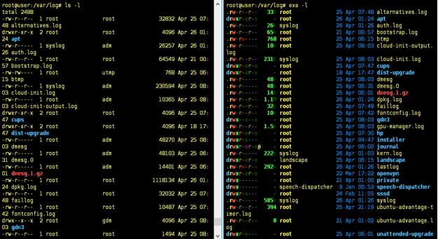 root@user:~# exa -l /var/log/