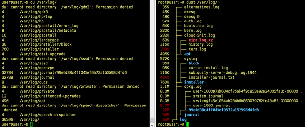root@user:~# dust /var/log/