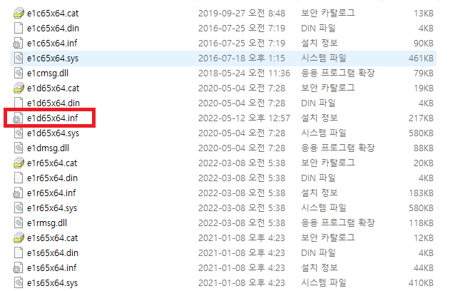 e1d로 시작하는 inf 파일을 메모장(텍스트편집기)으로 열고 안의 내용 변경