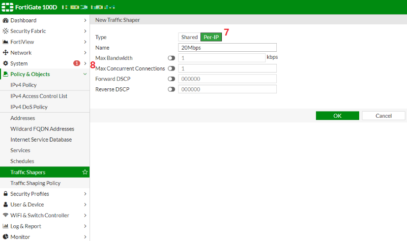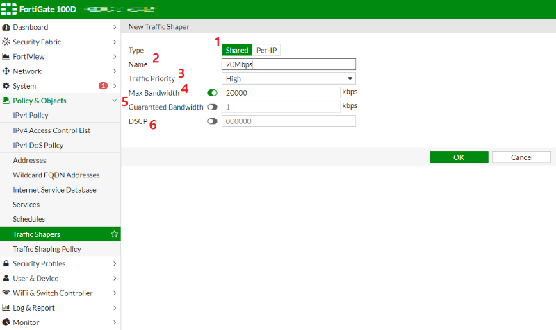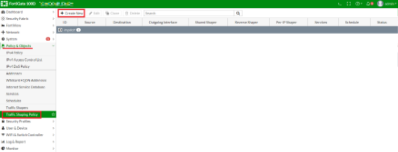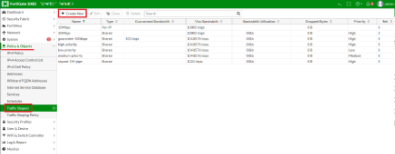 - Policy & Objects -> Traffic Shaping Policy -> Create New 로