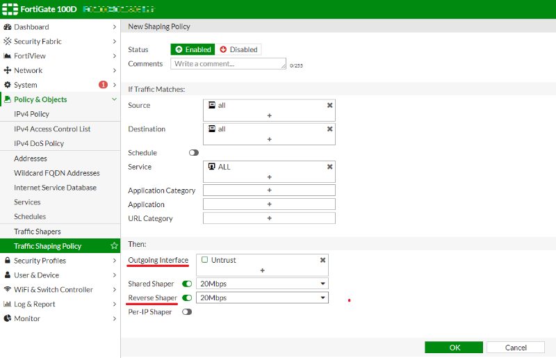 - Outgoing Interface : 트래픽 쉐이핑을 적용할 인터페이스 선택