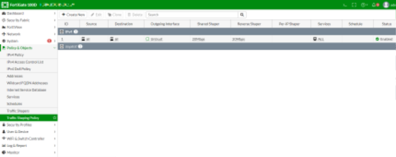 Fortigate Traffic Shaper는 장비 내에서 트래픽