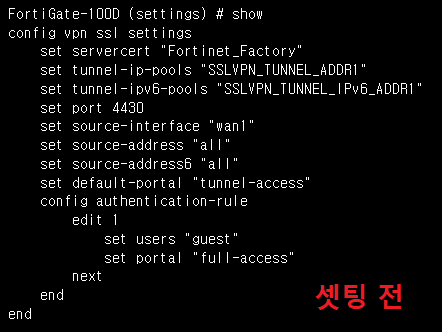 테스트 환경 : Fortigate 100D / v6.2.11 build1303(GA)