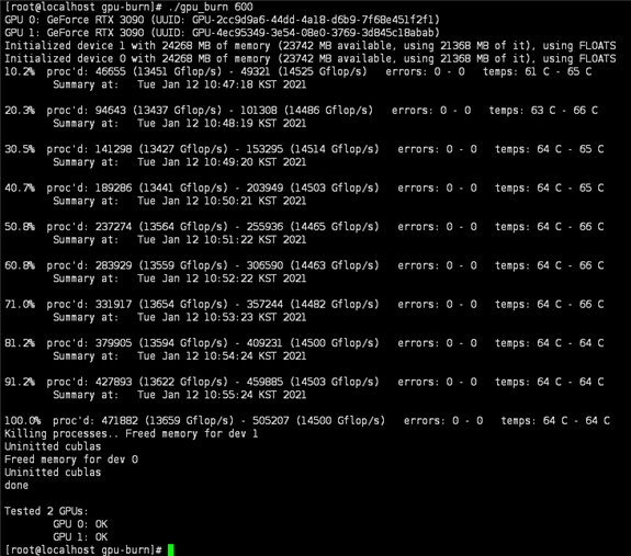 Ⅱ. 초기 세팅 및 인식 여부 확인 OS Version : CentOS 7.9 Nvidia Driver : 460.32.03 Cuda : 11.2 TEST Tools : GPU_Burn ![]()