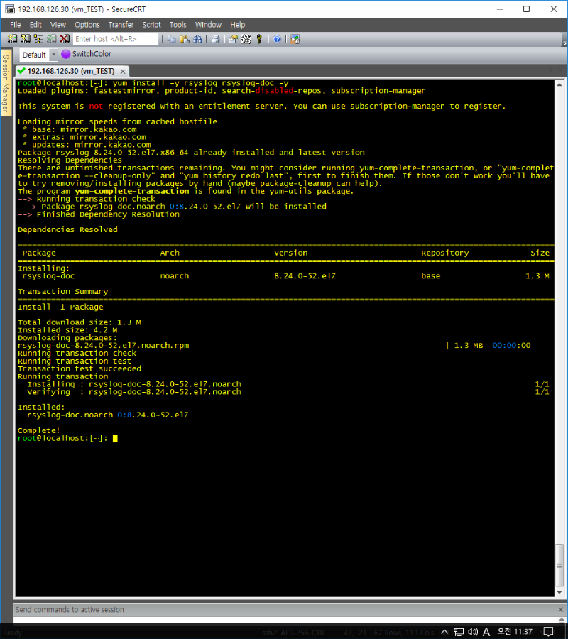 1) rsyslog 및 패키지 설치 ![]() root@localhost:[~]: yum install -y rsyslog rsyslog-doc -y 2) /etc/profile.d/ 내 스크립트 로그 작성 ![]() root@localhost:[~]: vi /etc/profile.d/log.sh #!/bin/bash