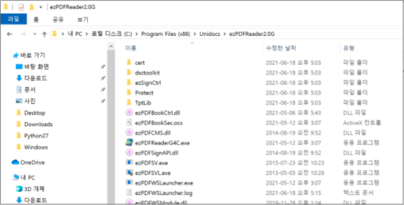 - ezPDF Reader 삭제 방법 1) [시작] - [시스템] - [제어판] - [프로그램 및 기능] - ezPDFReader 2.xx ~ 3.xx 선택 - [제거] 클릭 2) 아래 링크에서 자동삭제 프로그램을 다운로드 - ezPDFReader_통합삭제.exe 실행 - ezPDFREADERG4C 2.0.2.23 선택 - [전체삭제] 클릭 - 삭제 후 [종료] 버튼 클릭 * http://www.unidocs.co.kr/notice_view.do?boardSeq=00000000000000001624608347799000 □ 기타 문의사항 o 유니닥스 - 고객센터 : 02-715-6622 / unidocs_info@unidocs.co.kr - 기술지원 : 1661-1719 o 한국인터넷진흥원 사이버민원센터: 국번 없이 118 □ 참고사이트 o http://www.unidocs.co.kr/notice_view.do?boardSeq=00000000000000001624608347799000