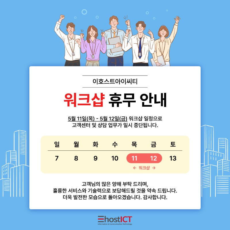 | [공지사항] 워크샵(5/11~5/12) 휴무 안내 | |