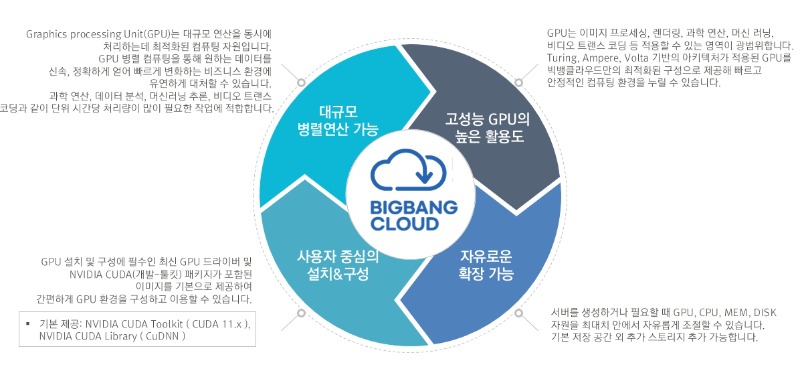 | 빅뱅클라우드 (GPU Cloud Service)의 특장점에 대해 소개합니다 | |