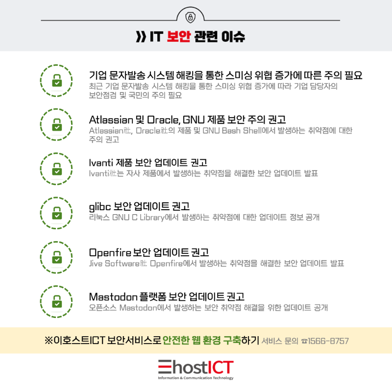 | 다음글 | [이호스트ICT 소식] 이호스트ICT, 제로트러스트 기반 웹격리 솔루션 RBI 출시 |