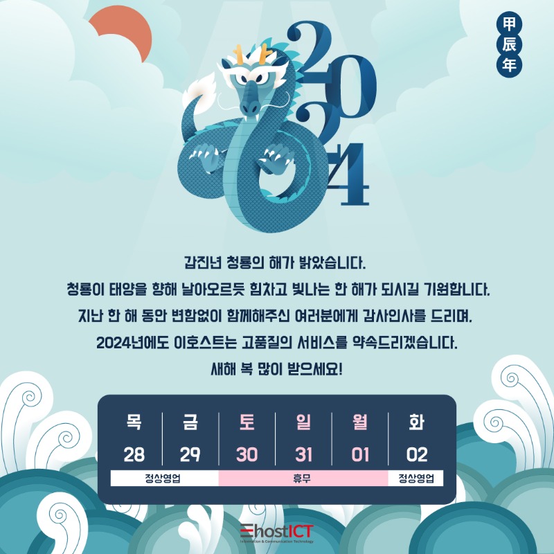 지난 한 해 동안 변함없이 함께해주신 여러분에게 감사인사를 드리며, 2024년에도 이호스트는 고품질의 서비스를 약속드리겠습니다.