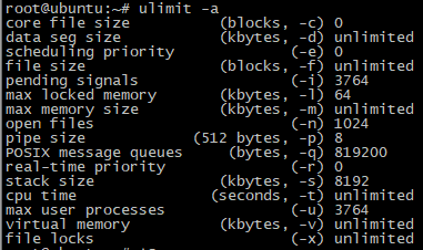 3. 주요 체크 사항 - open files : 서버의 프로세스가 열 수 있는 최대 파일 갯수 - max user processes : 유저가 사용 가능한 프로세스의 초대 갯수 - 유저는 최대 3764개의 프로세스를 사용할 수 있고, 해당 프로세스는 최대 1024개의 파일을 열수 있다. ==> open files 설정이 제한 사항 4. running 환경에서의 간단 수정 # ulimit -u 16384 -n 65536