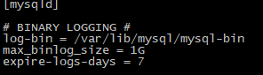 ![]() - binlog 파일 사이즈는 최대 1G, 보관기간은 7일 - 해당 설정 후 서비스 재시작을 해야 적용