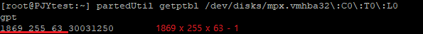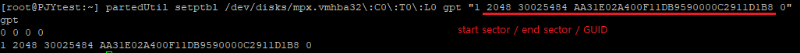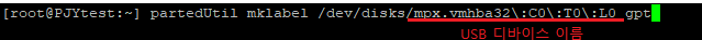 3. gpt 포맷 ~#] partedUtil mklabel /dev/disks/mpx.vmhba32:C0:T0:L0 gpt