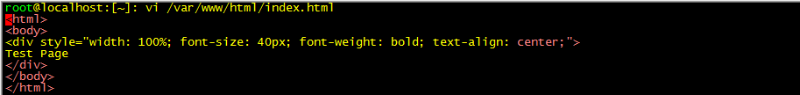 ![]() root@localhost:[~]: vi /var/www/html/index.html <html><body> <div style="width: 100%; font-size: 40px; font-weight: bold; text-align: center;"> Test Page </div> </body> </html> |