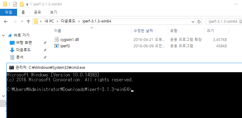 테스트 환경 : Windows server 2016, iperf 3.1.3