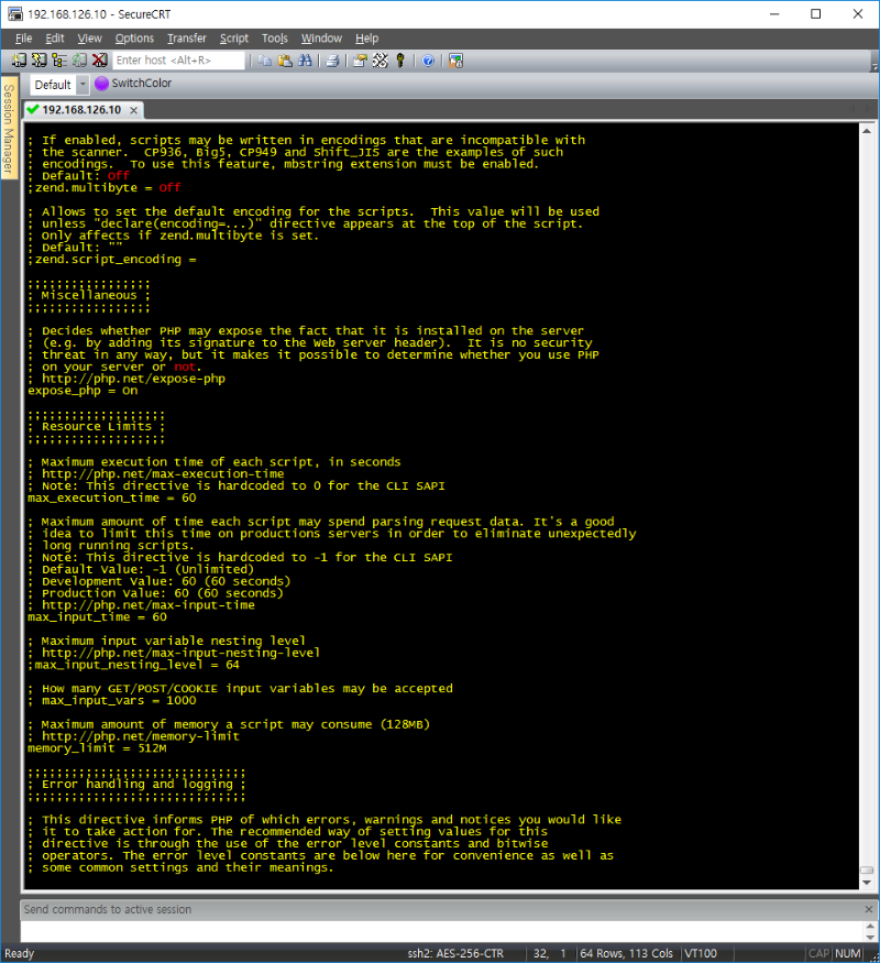 9) php.ini 설정 ![]() root@localhost:[~]: vi /etc/php.ini max_execution_time = 60 #line 383 date.timezone = Asia/Tokyo #line 902